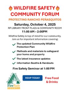 Rancho Penasquitos Fire Safe Council October Wildfire Safety Workshop by firesafe_admin | Aug 11, 2025