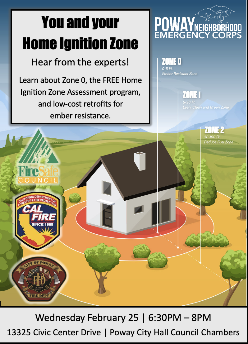 « All Events You and Your Home Ignition Zone February 25 @ 6:30 pm - 8:00 pm Free « Qualified Entities Training Add to calendar Google Calendar iCalendar Outlook 365 Outlook Live Details Date: February 25 Time: 6:30 pm - 8:00 pm Cost: Free Organizer Poway Neighborhood Emergency Corps Email powaynec@gmail.com View Organizer Website Venue Poway City Hall Council Chambers 13325 Civic Center Drive Poway, CA 92064 United States + Google Map